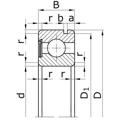 | Расстояние от торца наружного кольца до ближнего края канавки под упорное пружинное кольцо | a | 5,7 | мм |