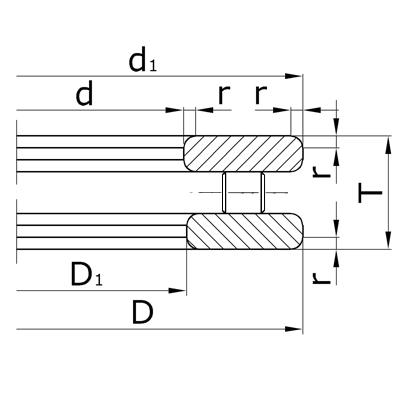 Подшипники упорные с цилиндрическими роликами одинарные однорядныеd — номинальный диаметр отверстия тугого кольца;